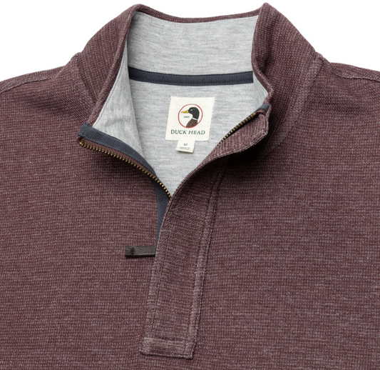 Duck Head - Long Sleeve Bearing Pique Performance 1/4 Zip Pullover - Dark Cognac