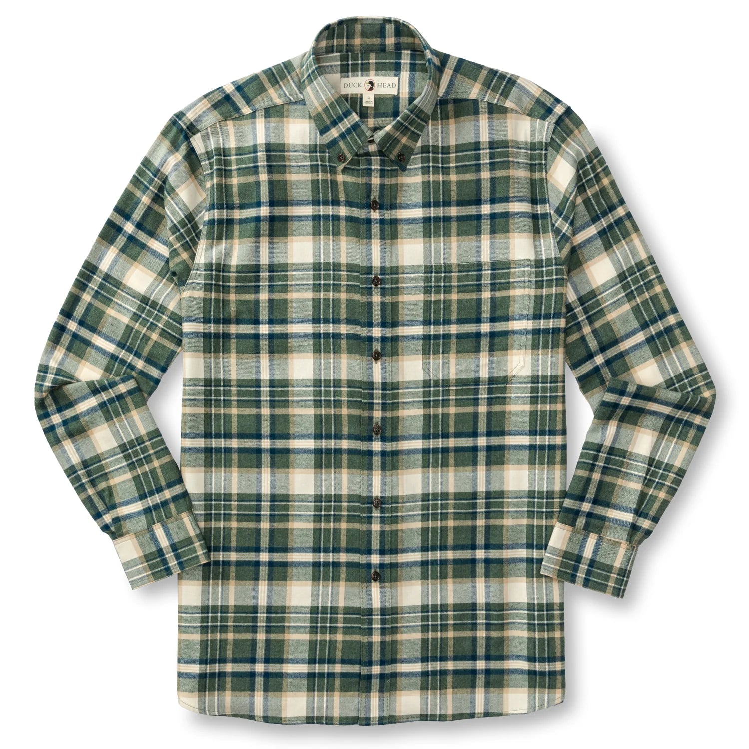 Duck Head - Long Sleeve Cotton Flannel Shirt - Stoker Plaid - Pine Green Heather