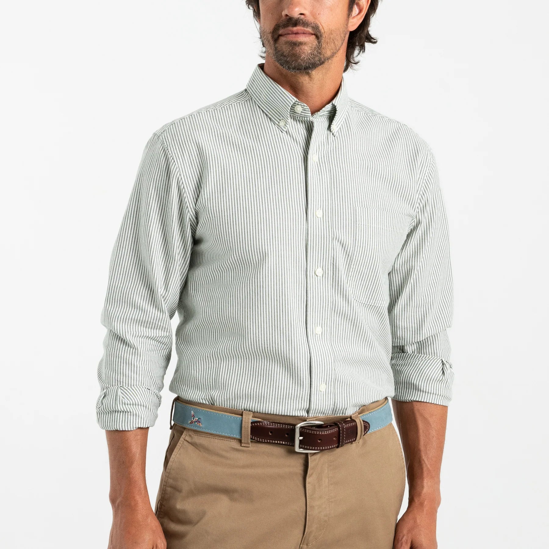 Duck Head - Long Sleeve Cotton Oxford Collins Stripe Shirt -Pine Green