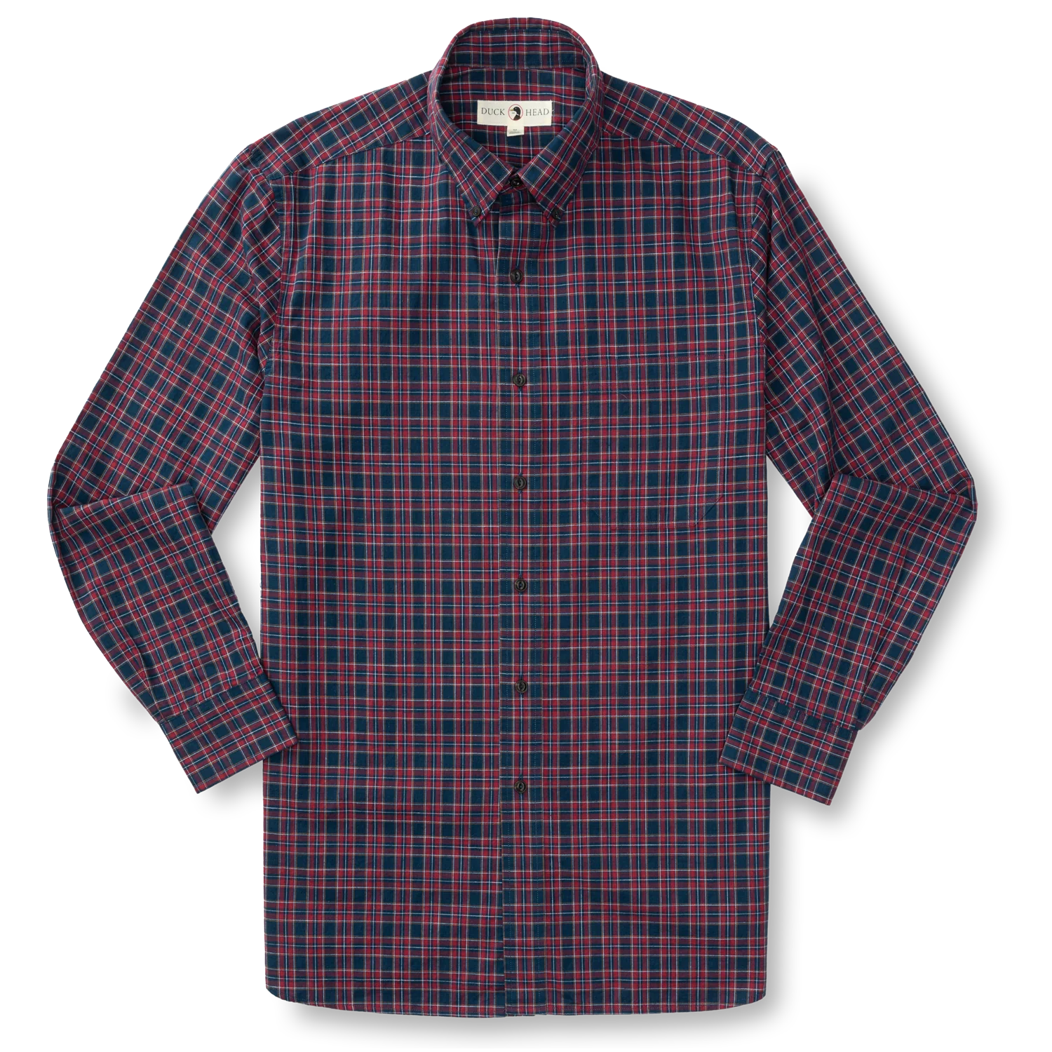 Duck Head - Long Sleeve Cotton Slub Shirt - Akins Plaid - Mirror Lake Blue