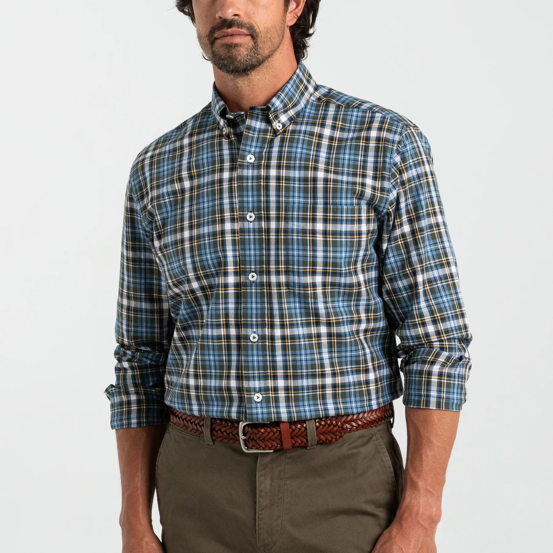 Duck Head - Long Sleeve Cotton Twill Shirt - Hamlett Plaid - Dark Forest Green