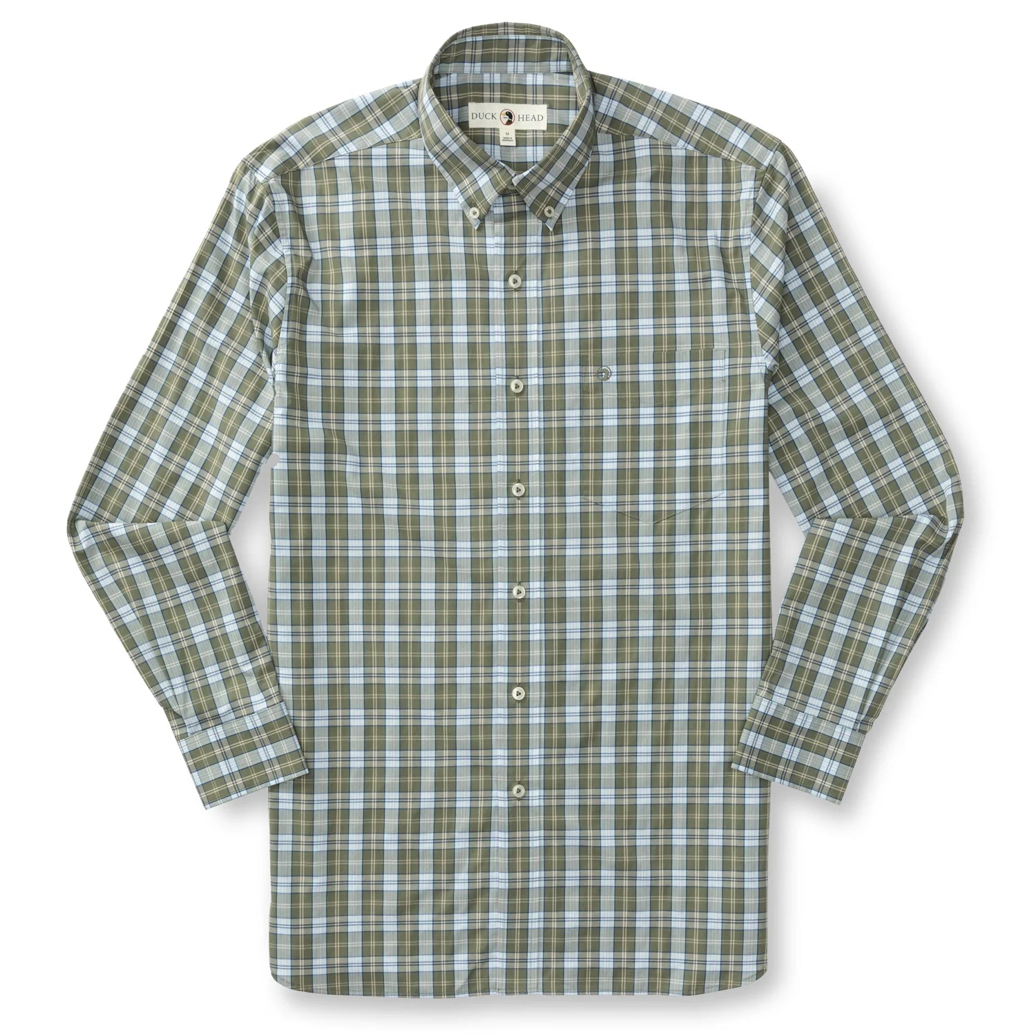 Duck Head - Long Sleeve Performance Poplin Shirt - Wester Plaid - Deep Lichen Olive