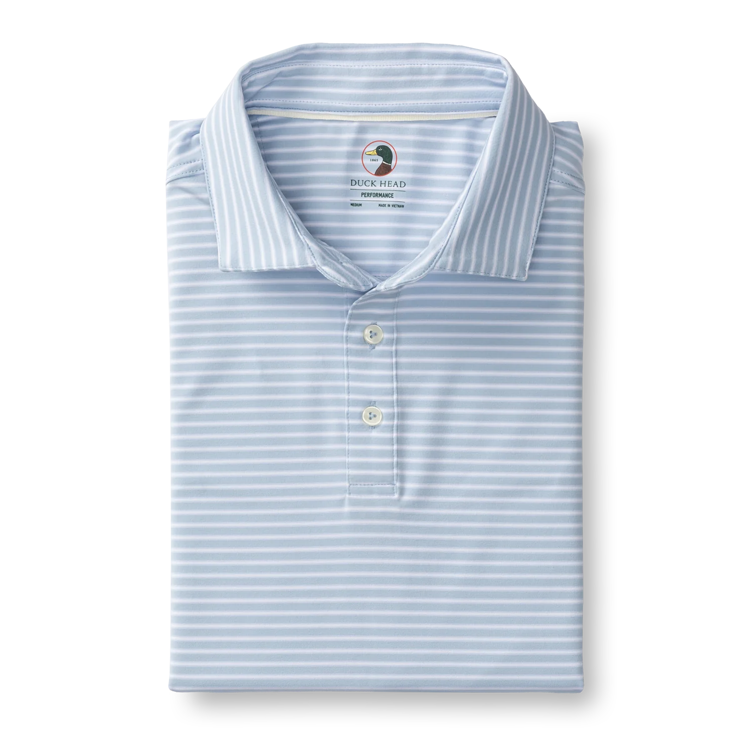Duckhead - Long Drive Performance Polo - Davis Stripe - Light Blue