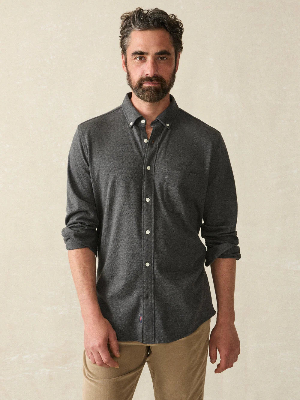 Faherty - Coastline Knit Shirt - Charcoal Heather Twill