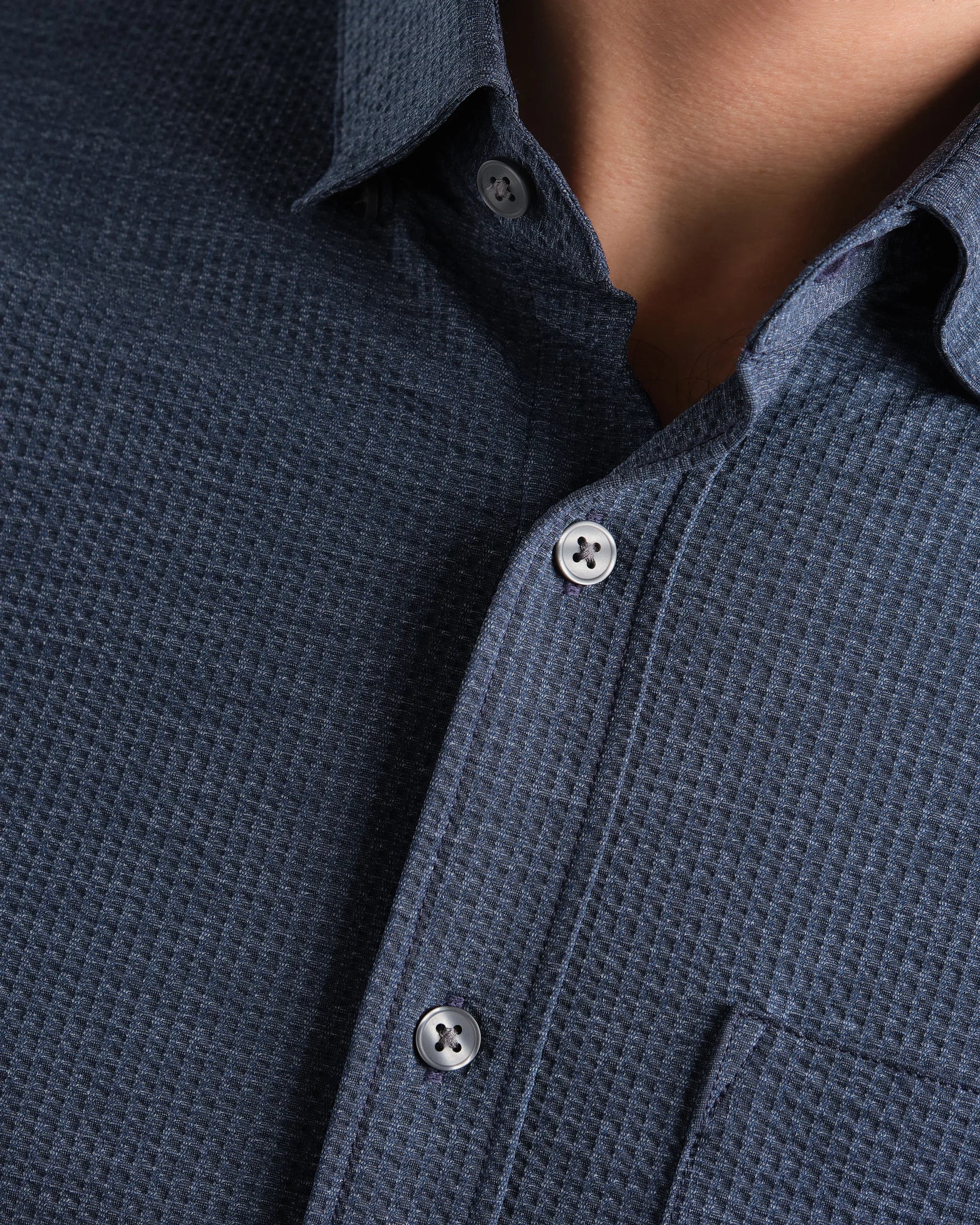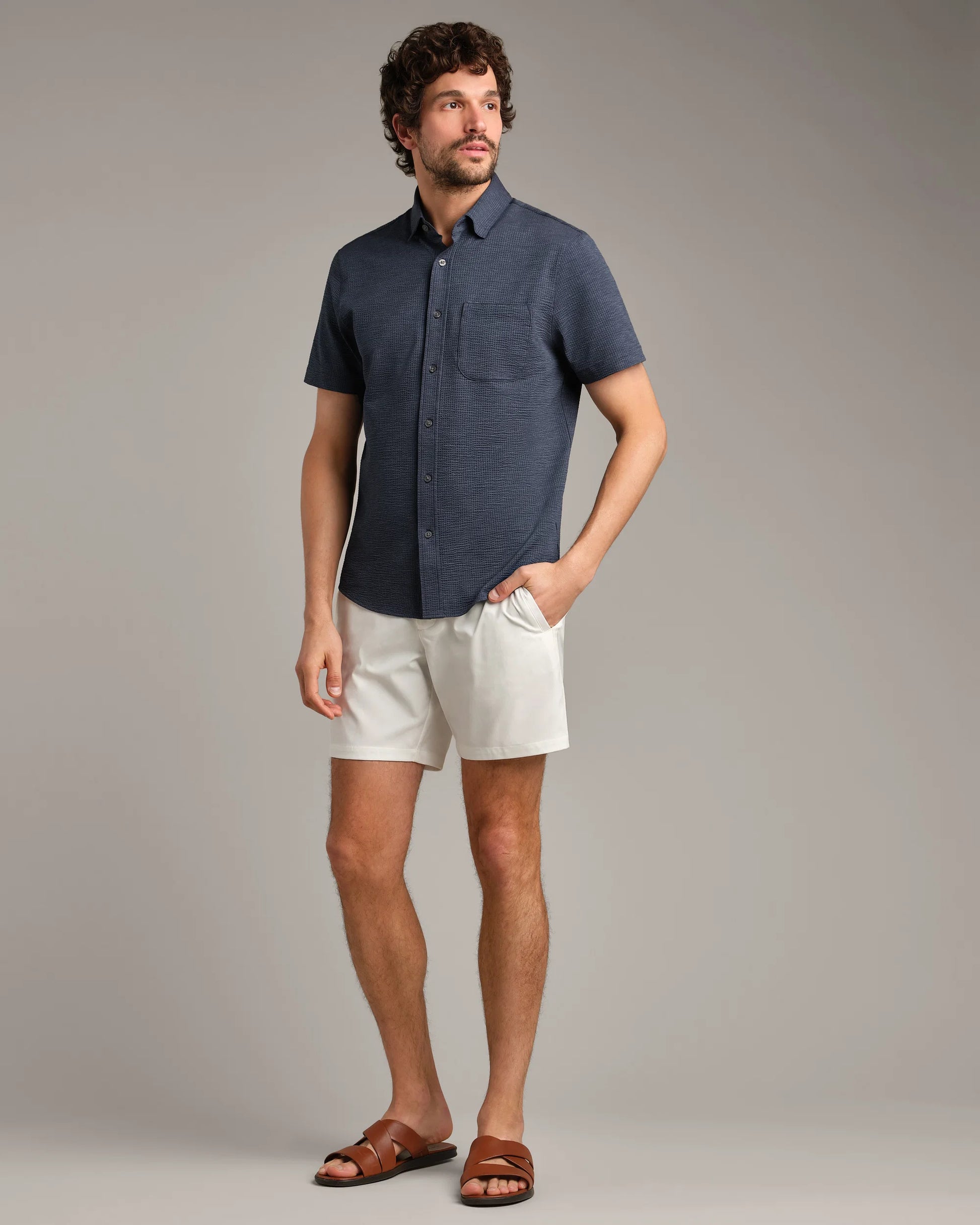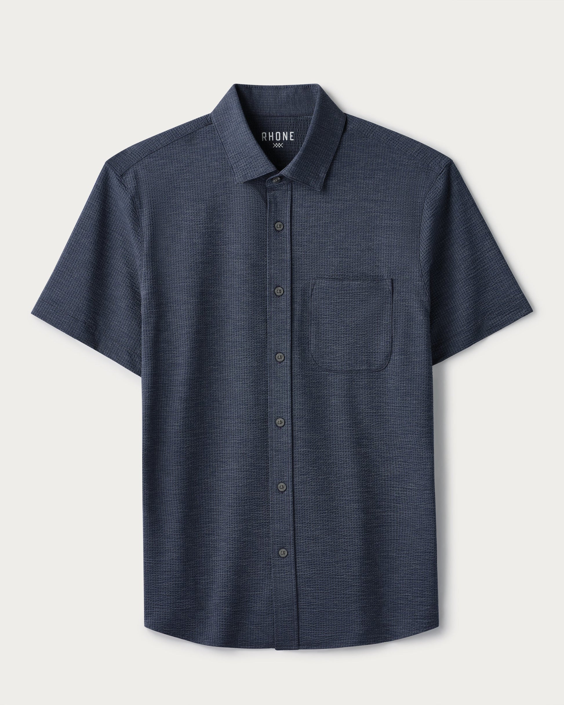 Rhone - Commuter Seersucker Short Sleeve Button Down - Navy Chambray