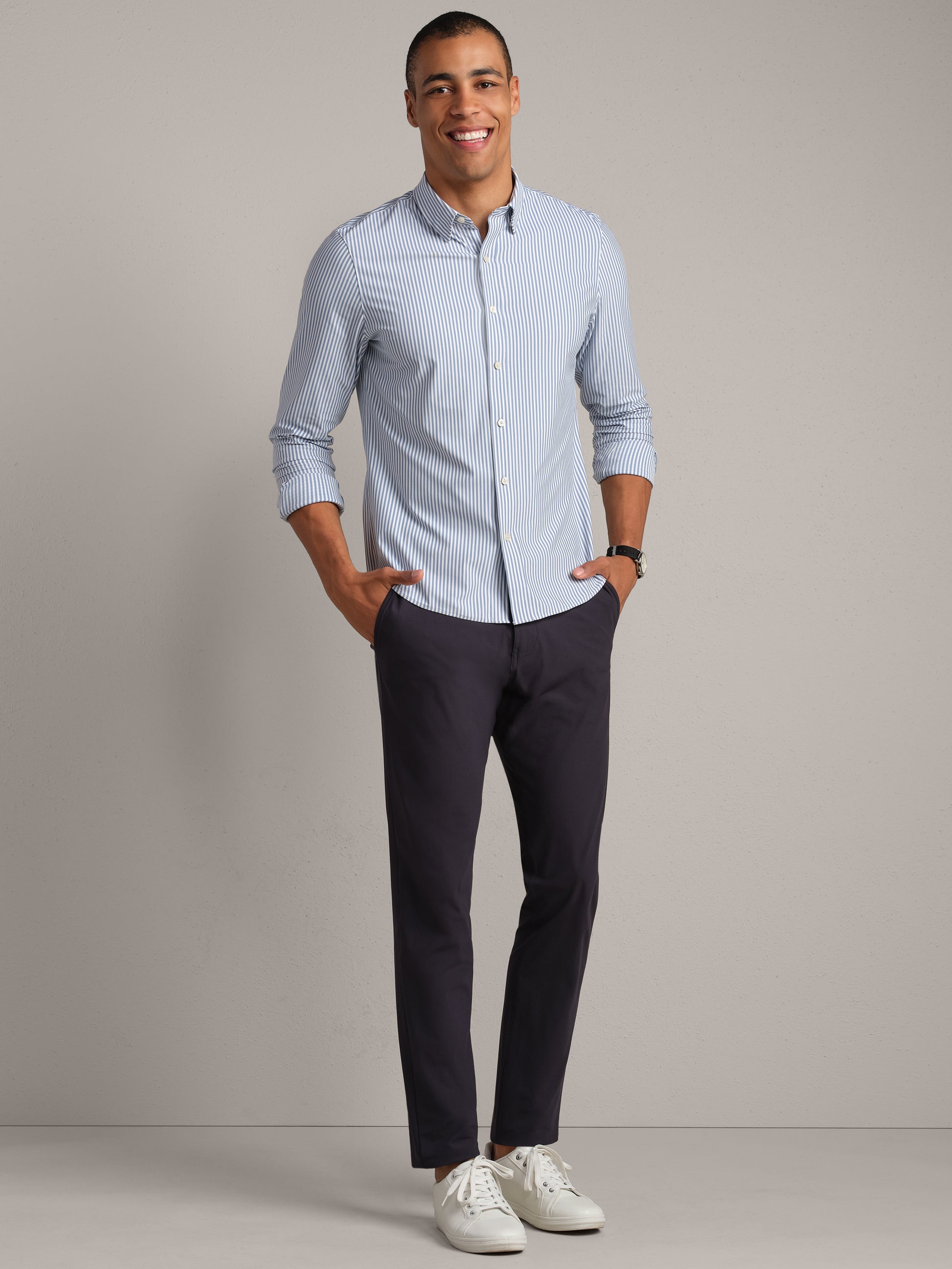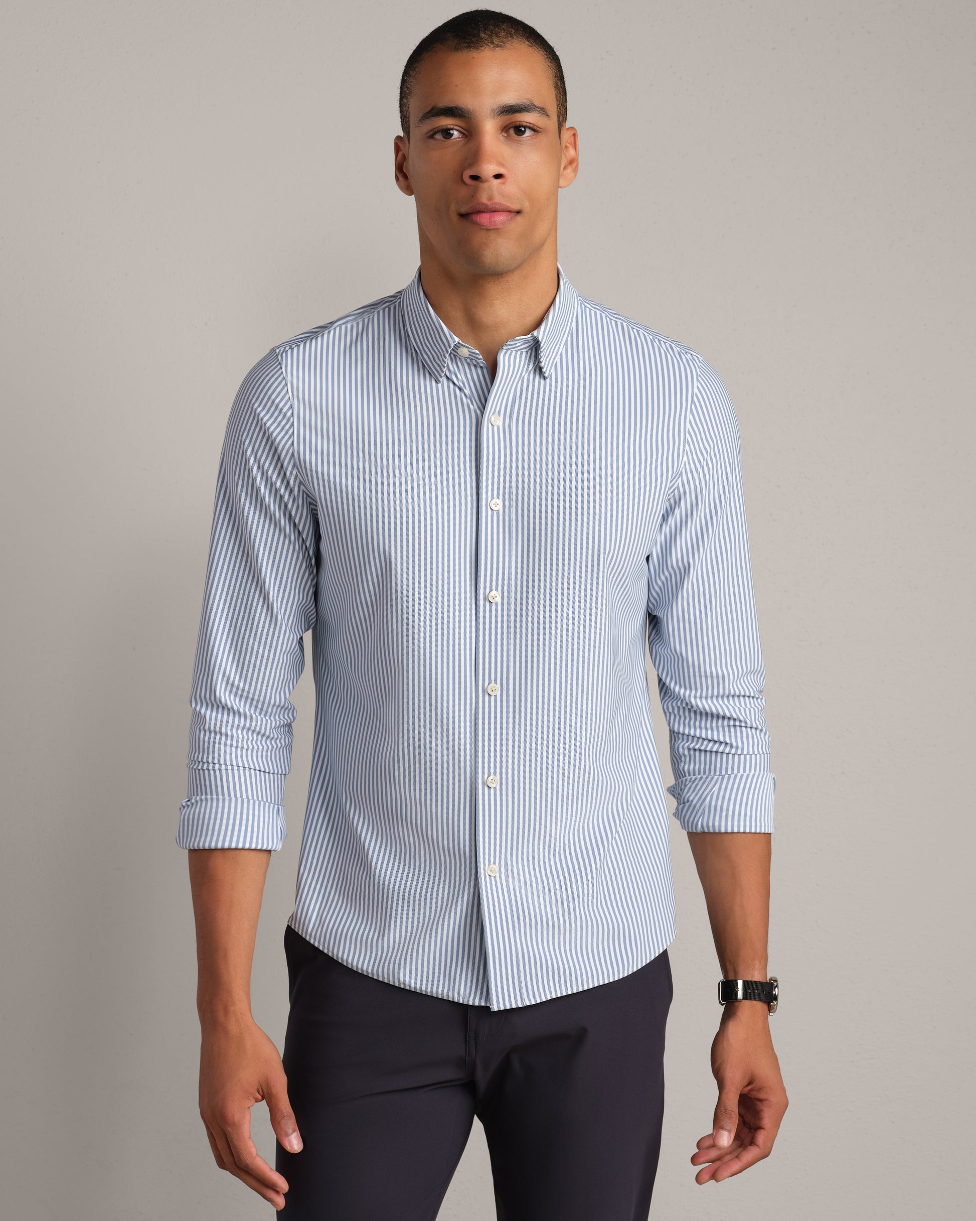 This revolutionary slim fit dress shirt was designed to overhaul the notions of your starchy, stiff workwear. Made with similar properties as our activewear, the Commuter® Shirt features a lightweight fine Italian fabric, GOLDFUSION® Anti-Odor Treatment, wrinkle release technology, and is 100% machine washable. Perfect for the office or a night out, our button down shirt means never having to choose between style and comfort again.