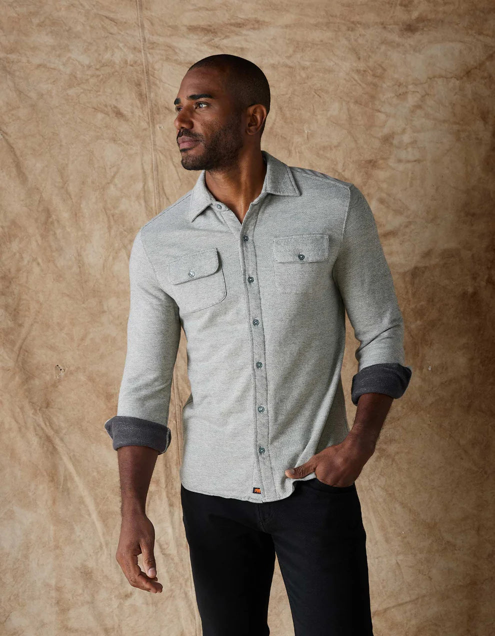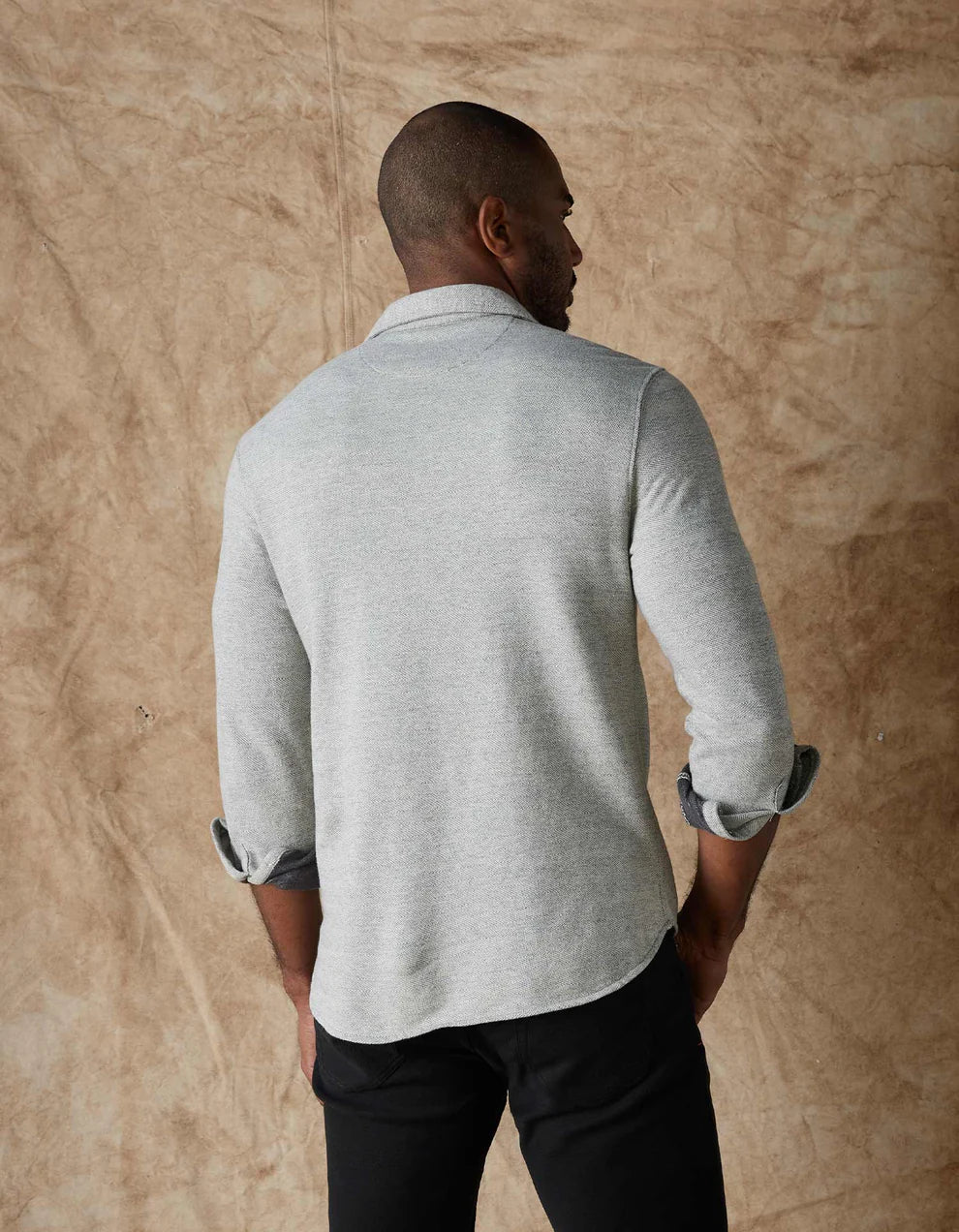 Feels like Saturday. Looks like Monday. The sophisticated styling of a classic woven shirt meets the comfort of a sweatshirt in our new Textured Knit Shirt. We disguised the most comfortable item in your closet in a classic Herringbone pattern and tailored fit that's sharp enough for the office, and comfortable enough to wear to bed.